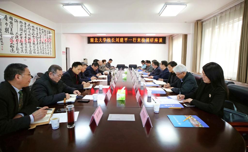 本网讯(文 朱志斌/图 广娟)3月12日下午,湖北大学党委副书记、校长刘建平,党委常委、副校长钱建国一行来校考察交流。学校党委书记程红兵,党委副书记、校长张文学,党委副书记杨立志,副校长张友兵等在行政楼三楼会议室与来宾进行座谈、双方就本科教育教学、研究生培养、学科建设、科研服务等工作展开深入交流。张文学主持座谈交流会。