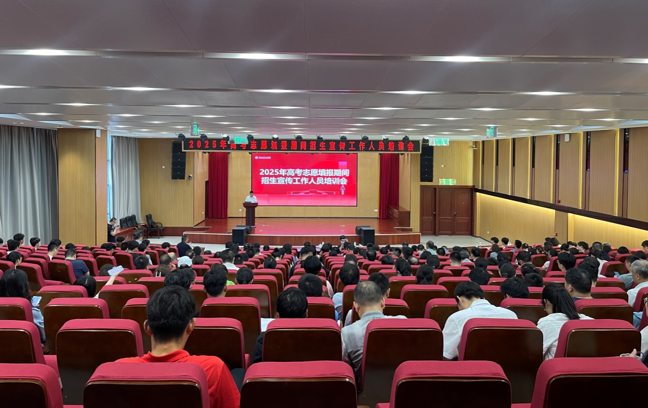 本网讯(文 周炼/图 杨男)为扎实推进2025年招生宣传工作,6月20日,学校在产教大楼四楼报告厅召开高考志愿填报期间招生宣传工作人员培训会。校长王晓,校党委常委、党政办公室主任王文山出席会议。