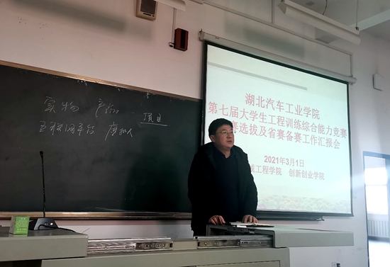 本网讯(文/图 齐剑平)3月1日下午,学校在第六教学楼6202教室召开第七届大学生工程训练综合能力竞赛校赛选拔及省赛备赛工作汇报会。会议由机械工程学院副院长陈君宝主持,创新创业教育学院院长缪勇、办公室主任王欣,各竞赛项目指导老师以及全体参赛学生参加汇报会。